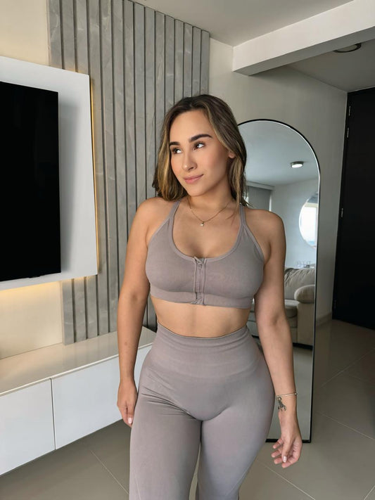 Set Crop Top Leggins Bota Campana efecto Push Up
