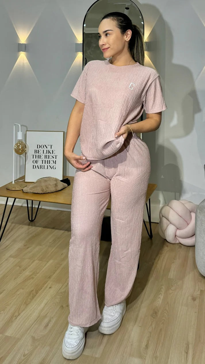 Nuestro Conjunto Casual incluye una camisa de cuello redondo y un pantalón con diseño holgado, cintura ajustable y bota recta.